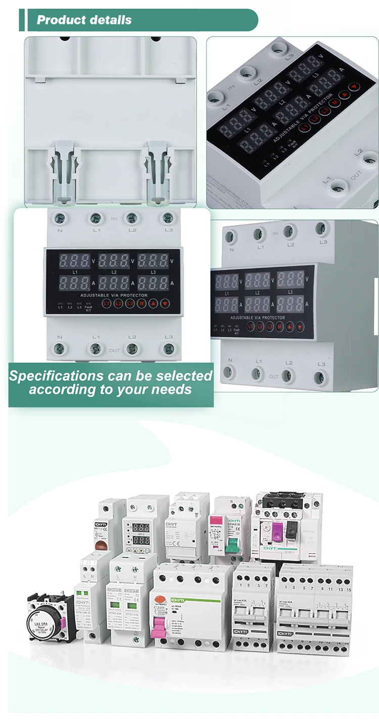 Доаѓаат со дигитален дисплеј и се направени со увезени модуларни електронски компоненти, со што се нудат висока доверливост и перформанси. Во случаи на ненормални напони како што се пренапон, недоволно напон или флуктуации на мрежата, заштитниците можат автоматски и брзо да го прекинат напојувањето, а потоа да го вратат откако напонот ќе се врати во нормала.