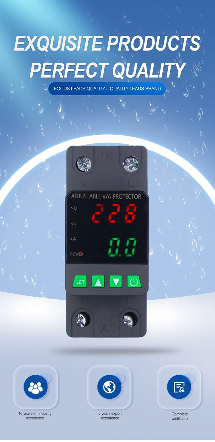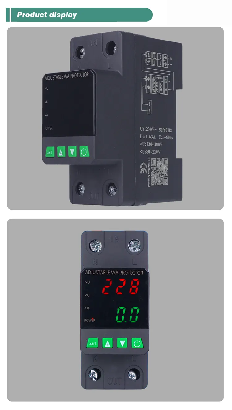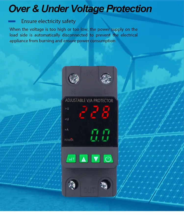Опремено со дигитален дисплеј и произведен со увезени модуларни електронски компоненти, има голема сигурност и перформанси. Заштитникот автоматски и брзо го прекинува напојувањето за време на абнормални напони (како што се пренапон, поттик или мрежен флуктуации) и го враќа напојувањето по напонот да се врати во нормала.