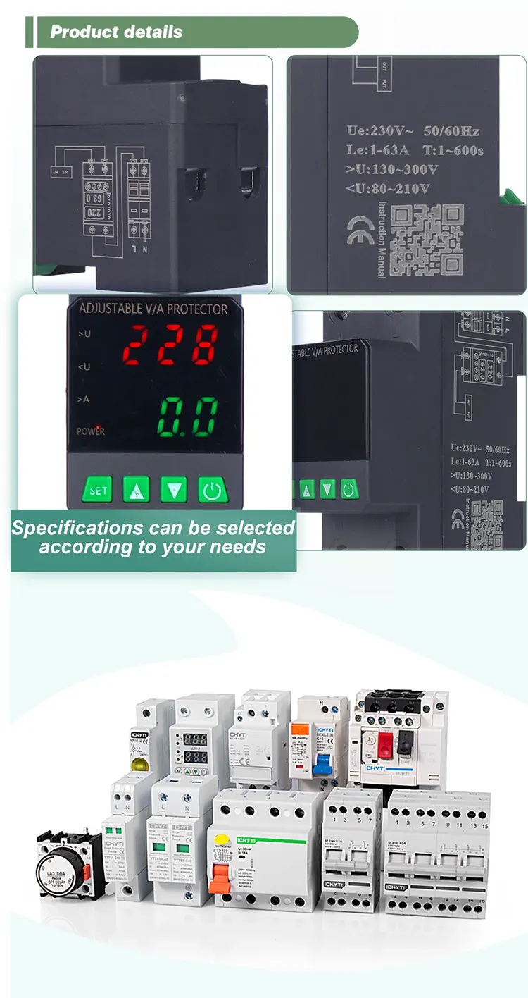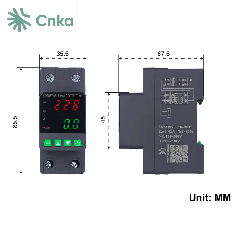 CNKA е добро познат кинески снабдувач кој обезбедува големо на заштитниот напон на напон на двојниот приказ на неговиот бренд. Овие уреди се дизајнирани специјално за еднофазни AC 220V, 50Hz кола со номинална струја од 63A, што ги прави идеален избор за заштита на кутии за дистрибуција на живеалишта или жици кои обезбедуваат моќност на еднофазна опрема.