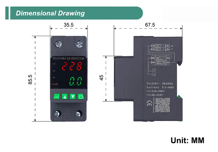 4. Двојниот заштитник на напон со двојно прикажување има модуларен дизајн за лесна инсталација на патеката, подобрување на неговиот изглед и функционалност.